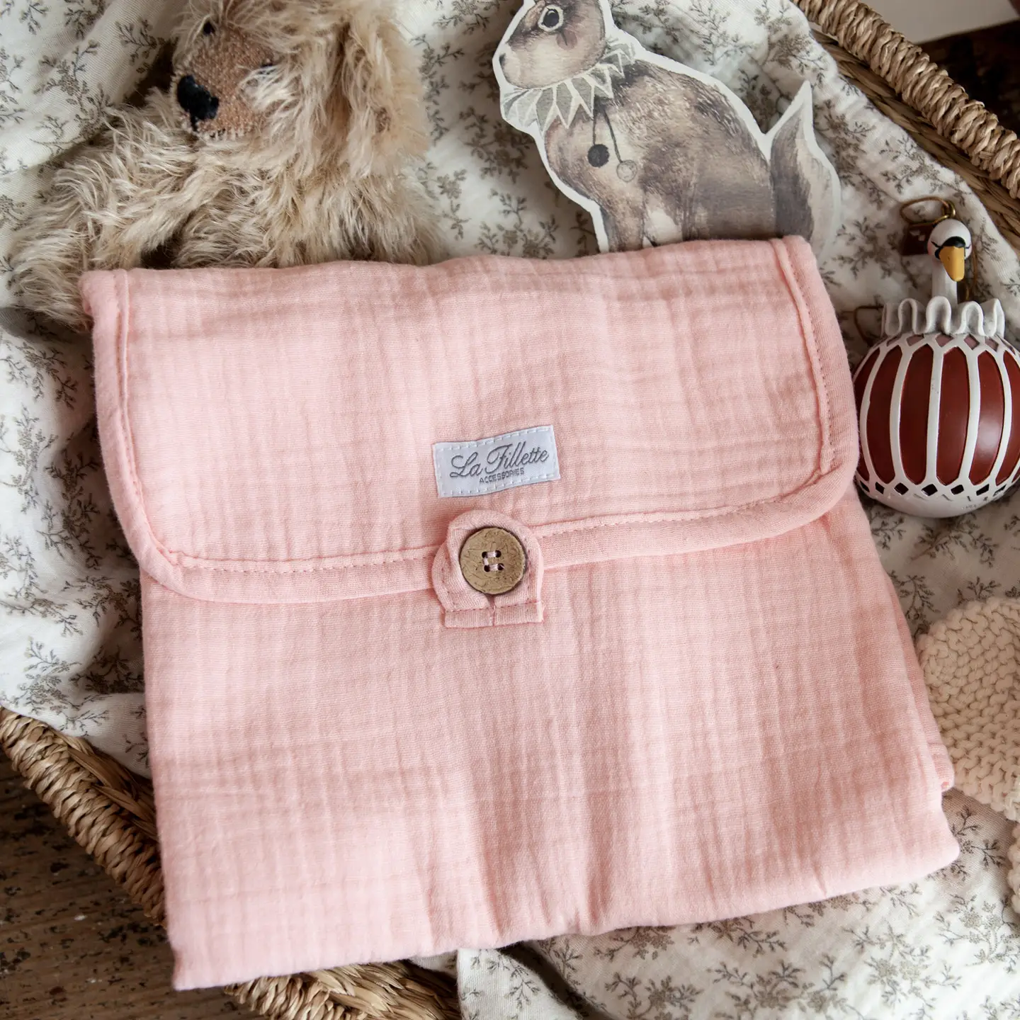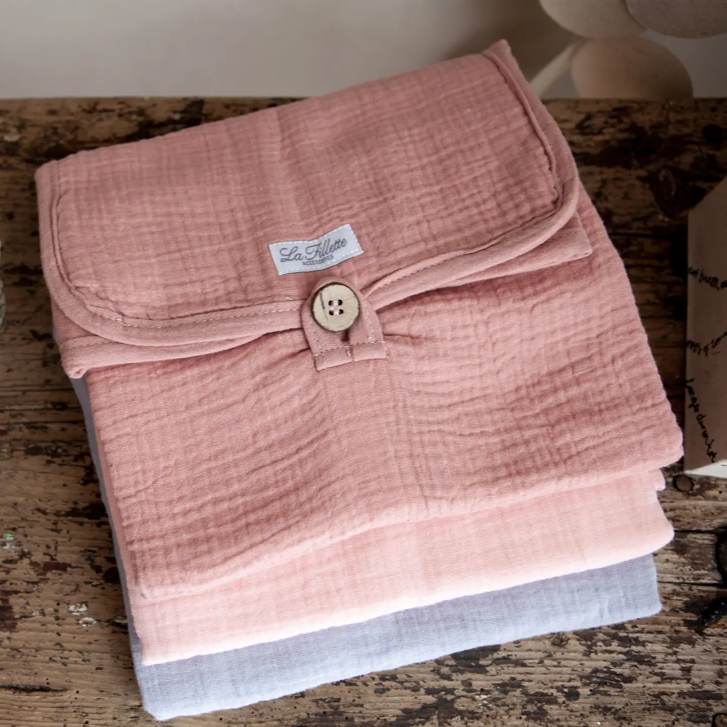 Esta atemporal colchoneta de muselina de algodón orgánico es una gran aliada para cambiar al bebé cuando estás fuera de casa.
