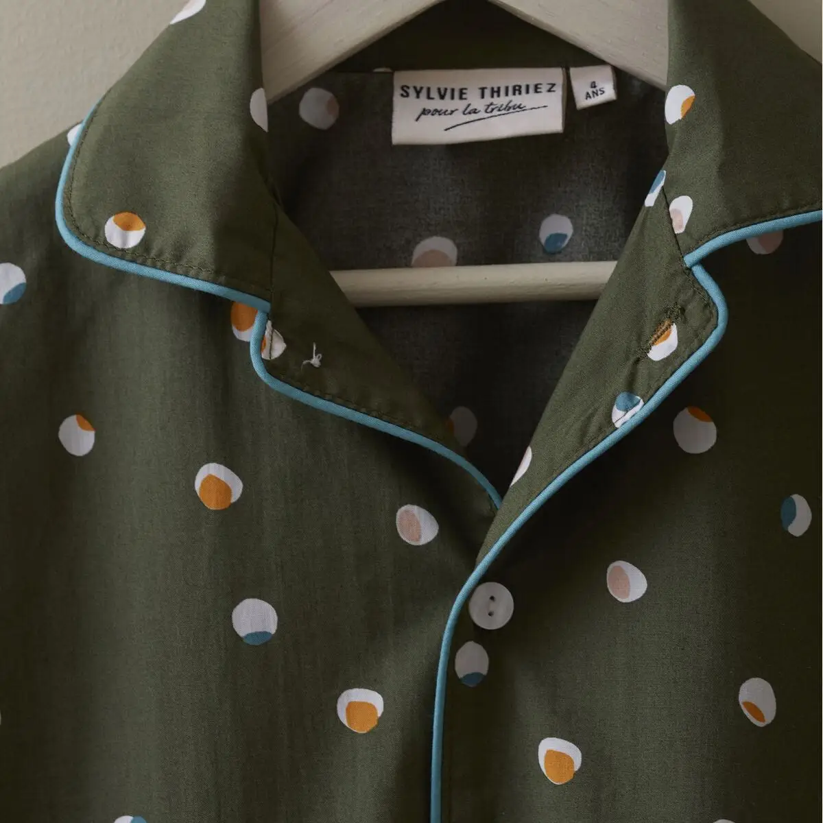 Ofrece a tu hijo un confort óptimo con el pijama Confettis, hecho de 100% algodón, de color verde y adornado con lunares dibujados a mano.